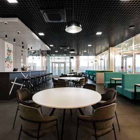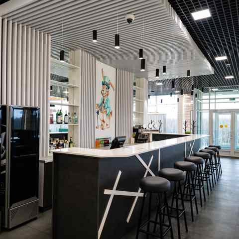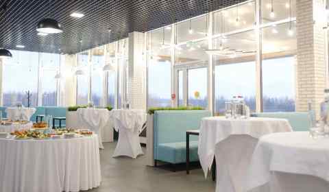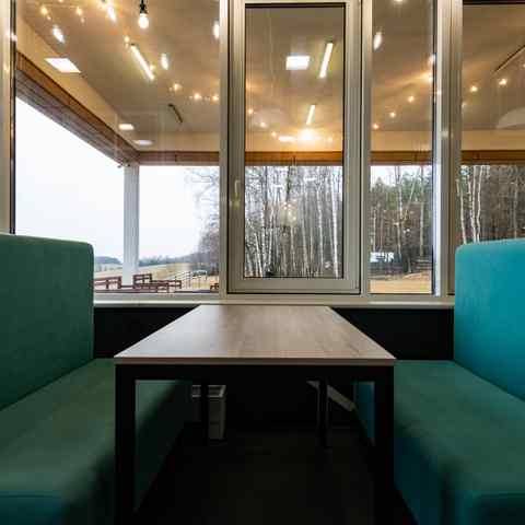 Кафе работает на постоянной основе, для проведения мероприятий, предоставляя гостям возможность насладиться белорусской и европейской кухней в комфортной и стильной обстановке. Интерьер заведения оформлен в современном стиле, гармонично сочетаясь с окружающим ландшафтом, а спокойная атмосфера позволяет расслабиться и забыть о городской суете.